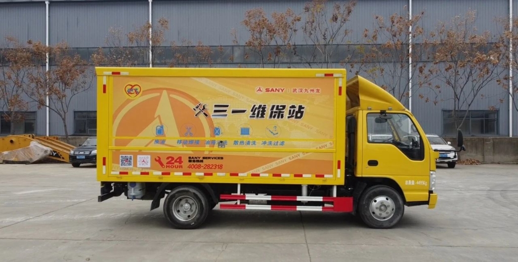 三一武漢九州龍一站式維保站,采用的是箱式貨車,這種車型具有輕巧靈活的特點,動力也十分充足有力,能夠輕松適應(yīng)各種復(fù)雜的野外工況工作環(huán)境。無論工地處于多么偏遠(yuǎn)的山區(qū)、泥濘的洼地或是崎嶇的山坡,這輛箱式貨車都能順利抵達(dá),為挖機提供及時的維保服務(wù)。